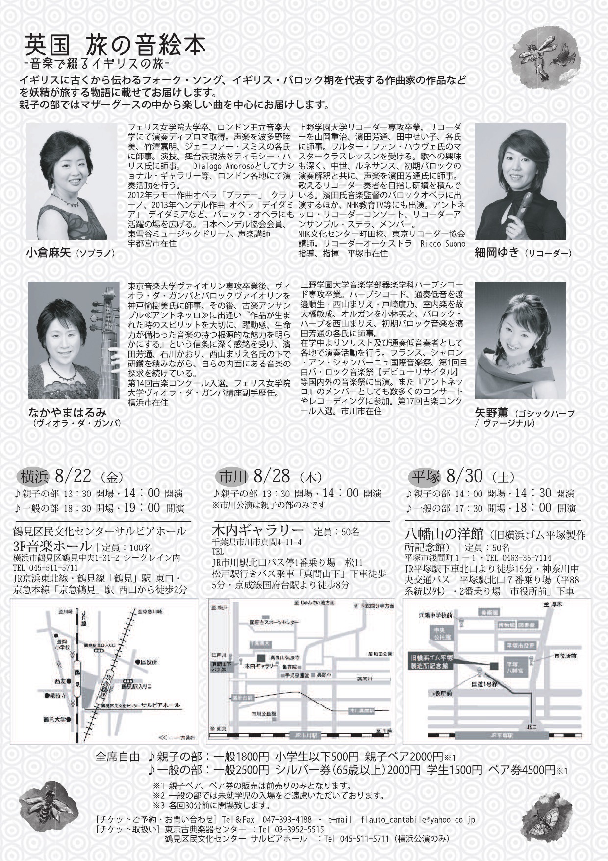 鶴見区民文化センター Tel; 045-511-5711 (横浜公演のみ)